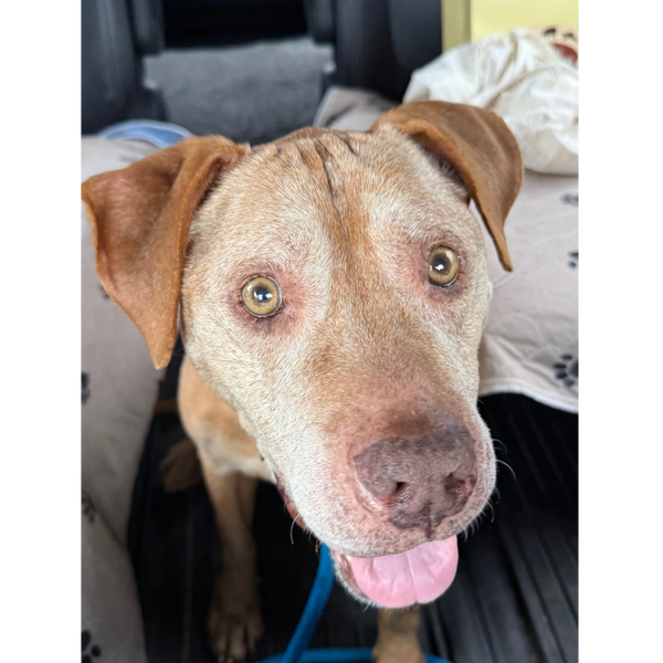 Teddy is an 11 year old boy who was found as a stray in 2016 and returned to his owner. Then in January of 2026 he was found again, only 40 pounds (should be 55 pounds or more), severe ear infection, skin issues and high heart worm positive. He had no interest and was scheduled to be euthanized when we brought him to the sanctuary. He is settling in the quarantine area until his vet visit and is the perfect little boy. He is relaxing, sleeping a lot and enjoying his outdoor potty time. It will take a couple of weeks and we will start the integration process so he can be with the rest of our residents!